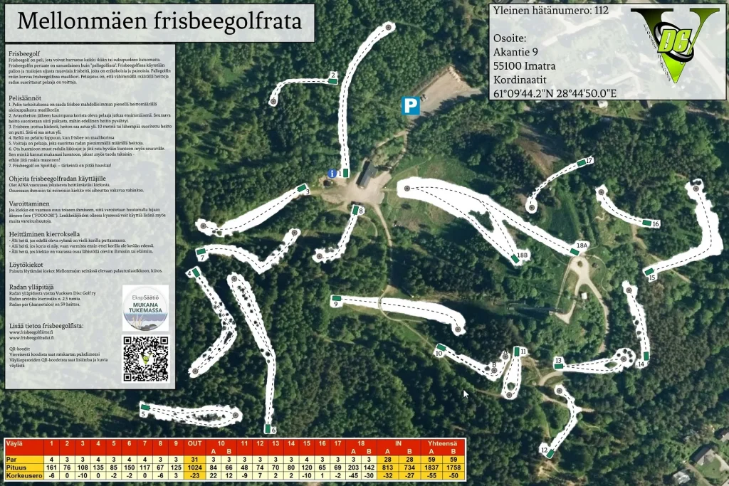 Ja viimeisen väylän parasta antia on ehdottomasti ne näkymät. A-tee paikka sijaitseen Mellonmäen huipulla ja matkaa korille on 203m ja korkeuseroa 45m. Tapoja on monia lähestyä koria, mutta ihan joka kerta avaus ei sinne edes C2-rinkiin laskeudu. B-teepaikka ei paljoa isoveljelleen näkymissä häviä ja heitto helpottuu huomattavasti kun ollaan jo rinteessä alempana.